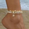 Summer Bohemian Style Starfish Shell Millet Bead Ankle Chain Three-Layer Set Beachy Elegant Foot Jewelry Accessory
