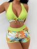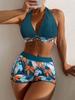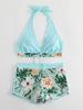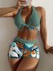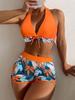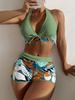 Swimsuit Women's split high waist flat angle strap print solid color splicing Internet celebrity swimsuit