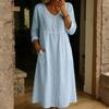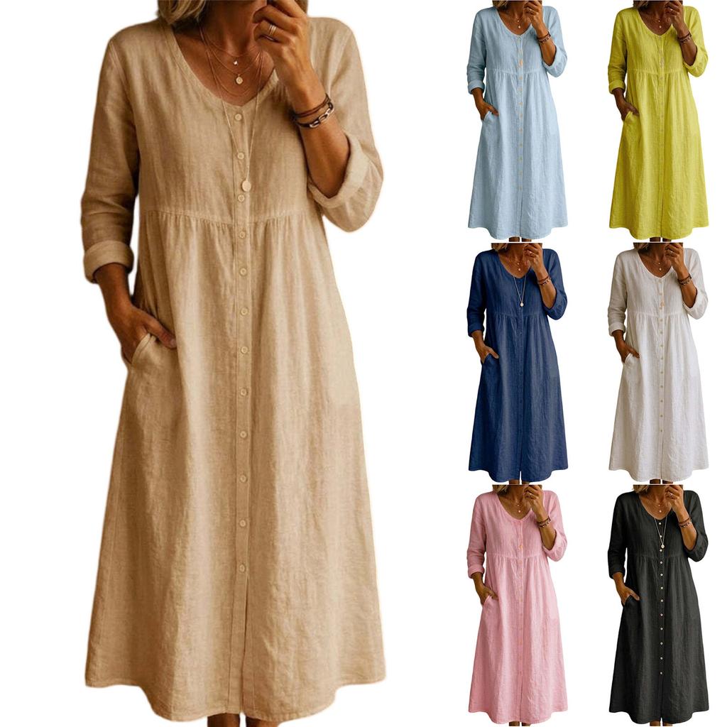 Women's Fashionable Casual Cotton-Linen Long-Sleeve Button-Down Dress