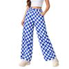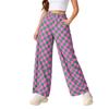 Women's Casual Wide Leg Checkered Pants, High-Waist Elastic Waist, Loose Comfy Trousers With Side Pockets