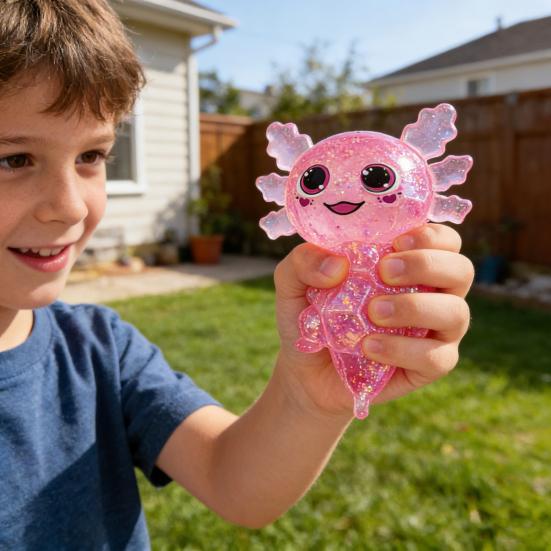 Glittery Salamander Squeeze Toy Soft Slow Rebound Stress Relief Fidget with Transparent Glitter Cute Decompression Gift