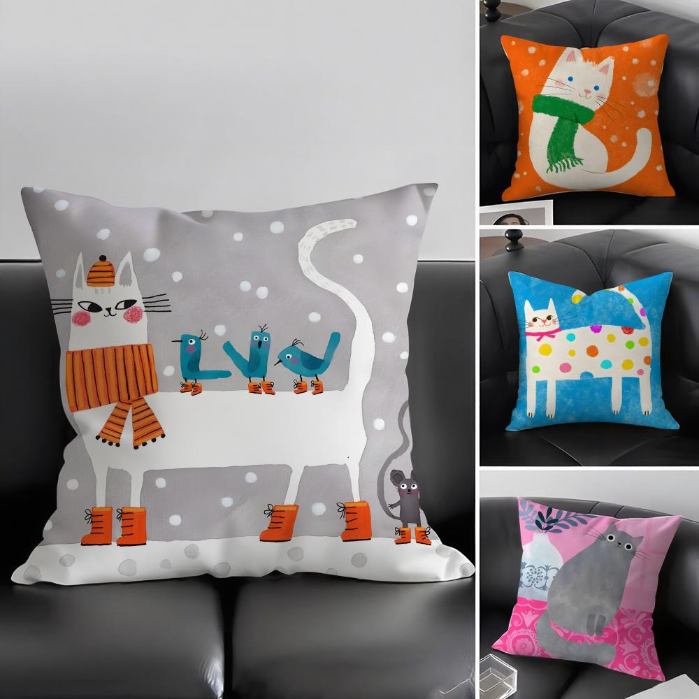 Cat Cute Cushion Cover Pillowcase Ultra Soft Skin Friendly Fabric Cloud Like Comfort Concealed Zipper