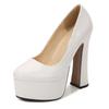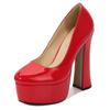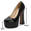 Kadın Rugan Yüksek topuklu ayakkabılar Bayan Su Geçirmez Platform Yüksek Topuklu Kadın Yuvarlak Ayak Kalın Topuk Tek Ayakkabı Kadın Ofis iş ayakkabısı OL Ayakkabı
