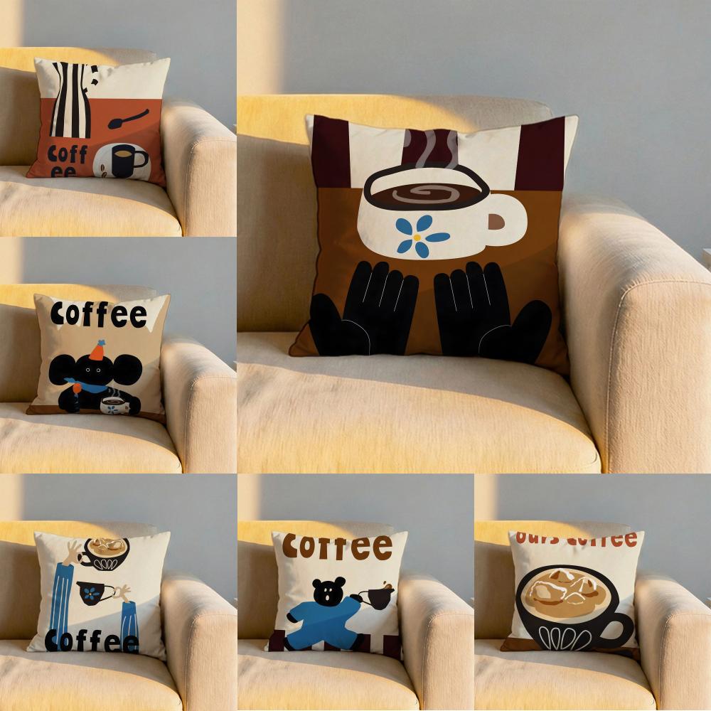 Creative Coffee Illustration Cushion Cover Soft Reversible Durable Pillow Cover MultiScene Use for Home Car Daily Comfort