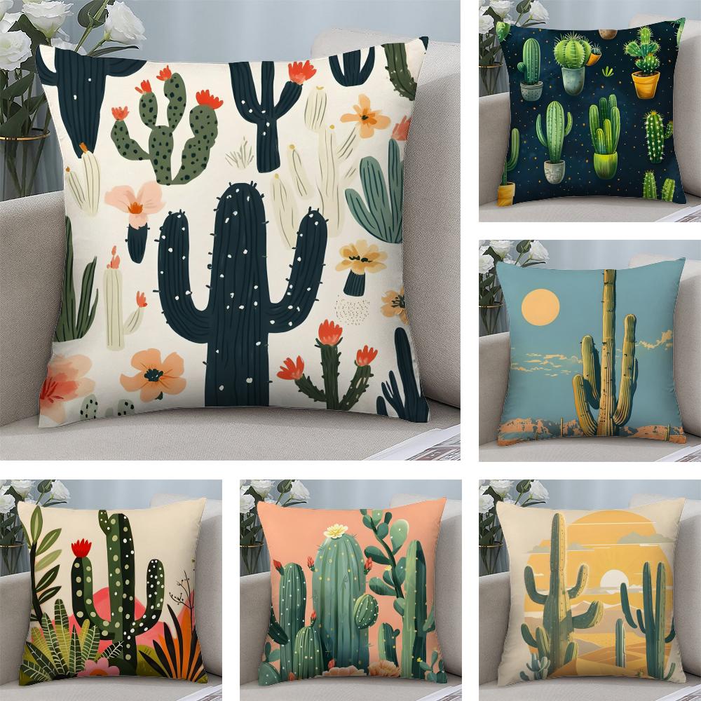 Cactus Fashion Cushion Cover Plush Fabric Soft DoubleSided Printed Sofa Warm Winter Home Child Gift Pillow Case