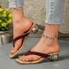 Beach Vacation High-heel Flip-flops Women's 2026 Spring and Summer Outer Wear Thick-heel Square-toe Clip Flip-flops