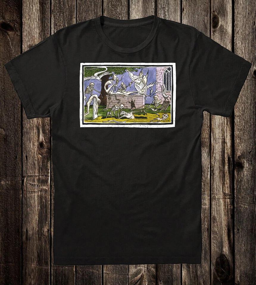 Vintage Style Goth Tee T Shirt Occult Victorian Art Graveyard Skeletons