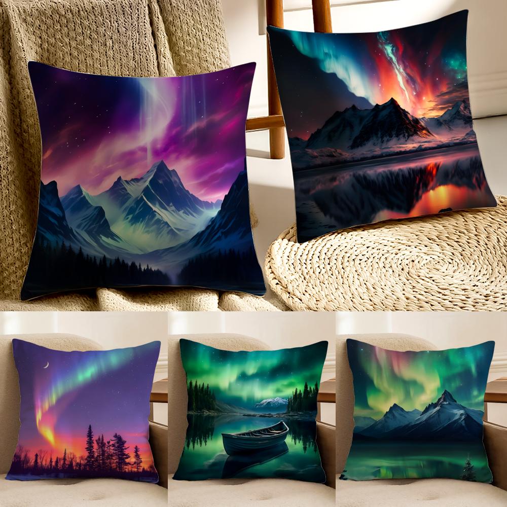 Reathtaking Natural Scenery Art Winter Aurora Cushion Cover Pillowcase Antidustmite living Room Sofa Decor Cushion Room