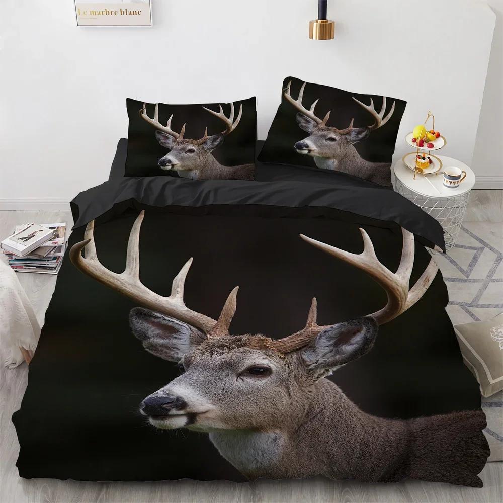 Black Theme Jungle Mose Soft Duvet Cover Set for Boy Ten Girl Bedrom Set 3D Print Grey Elk Der Soft Microfiber Warm Comforter Cover