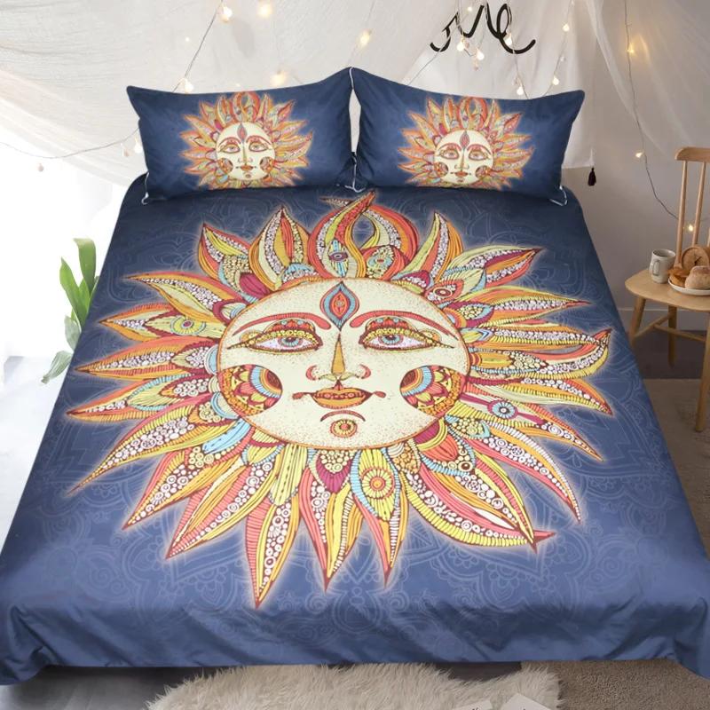 Boho Cosmic Soft Duvet Cover Set Quen Sized Dimensions Bohemian Beding Premium Golden Sun Warm Comforter Cover featuring Pilow Shams Celestial Ultra