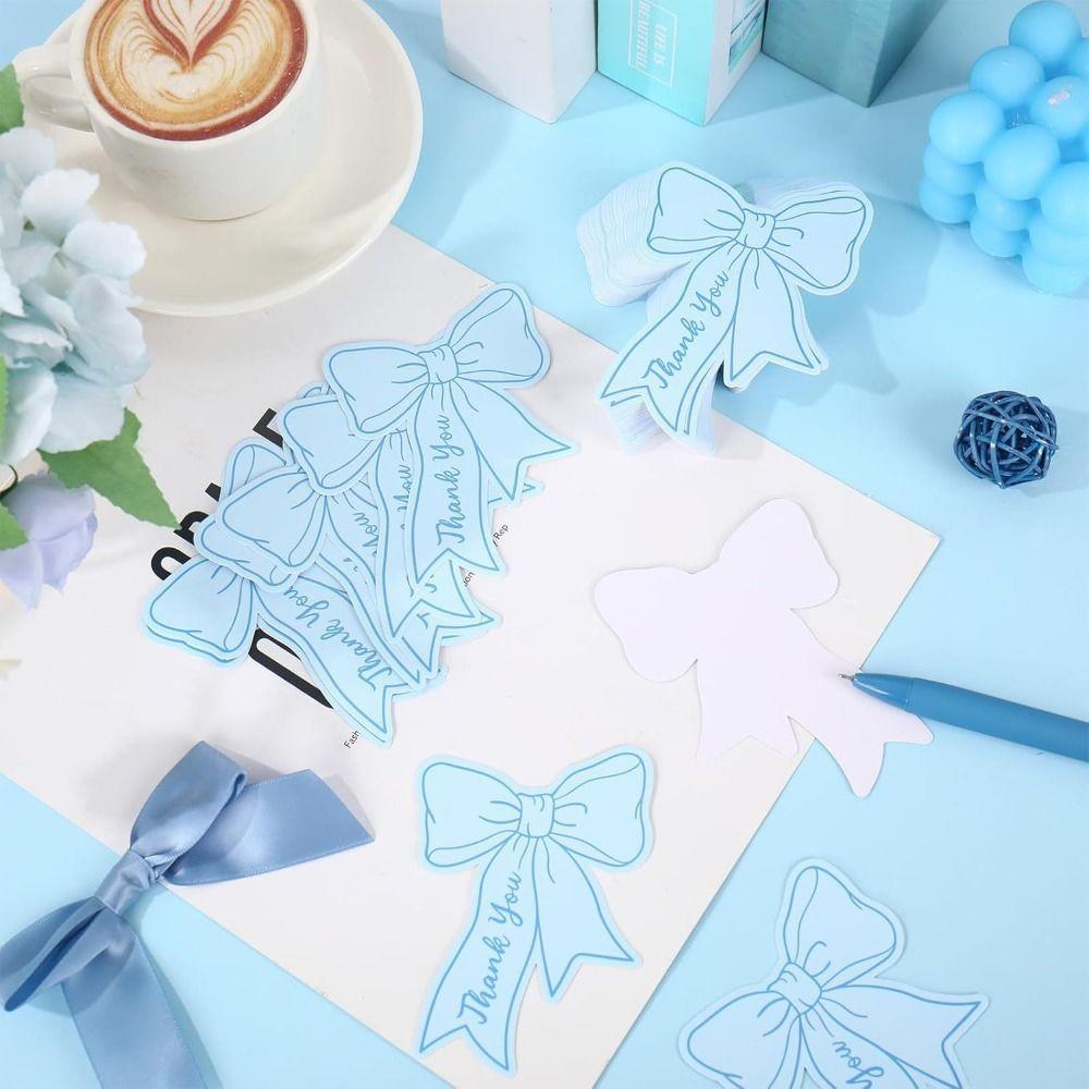 100pcs 2.5x3.5 Inch Thank You Cards Paper Pink Bow Gift Card Handwritten Style DIY Crafts Bowknot Cards Happy Valentines Days