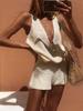 Women's New Arrivals Solid V-Neck Backless Top + Shorts Two Piece Sweater Set