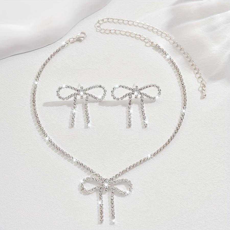 Make a dazzling statement with the Ultra Sparkling Claw Chain Fully Paved Bow Necklace, an extravagant accessory designed for women who love to turn heads.