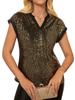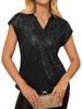 Women's Summer New Fashion Shiny Sequins V-Neck Short Sleeve Party Top Blouse for Women