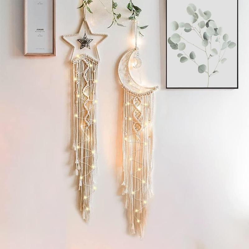 Bohemian Moon Dreamcatcher Wall Hanging Cotton Woven Tapestry Star & Crescent Macrame Decor Nordic Style Home Ornament