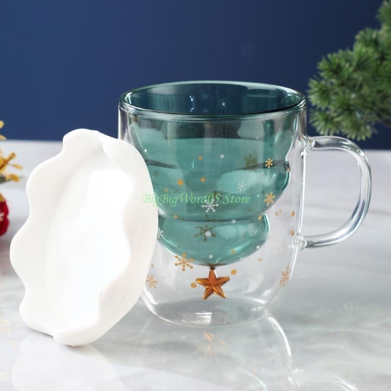 24TE 300ML Lovely Christmas Tree Glass Cup Heat-Resistant Double Wall Glass Cup