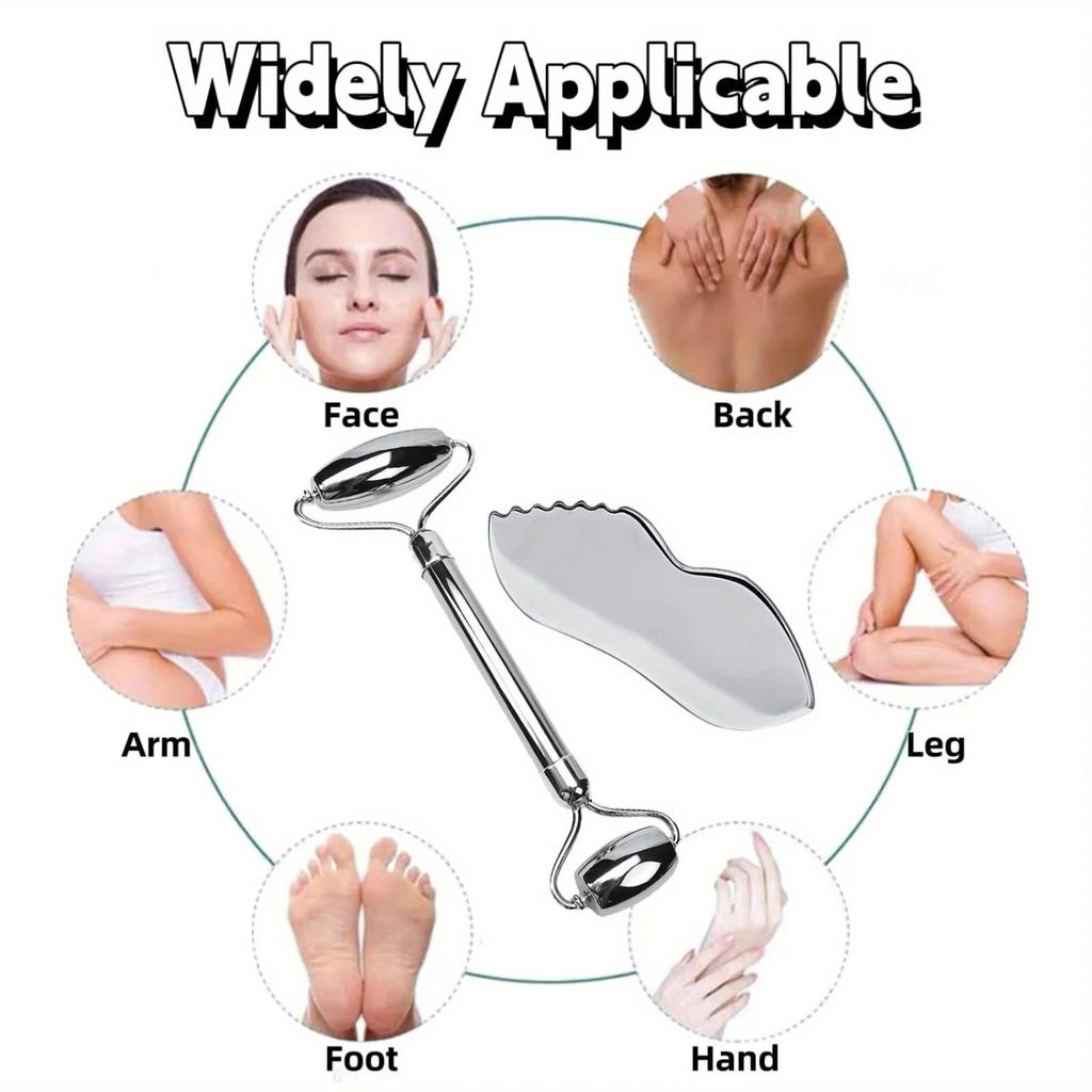 1/2/3 Piece Stainless Steel Facial Roller and Gua Sha Massage Tool Set Metal Beauty Tools for Body, Face, Neck and Eyes