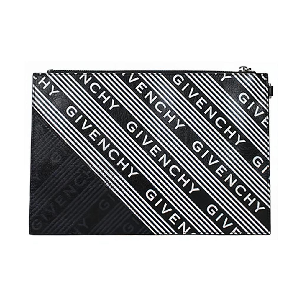 Givenchy Fashion Letter Print Zipper Leather Clutch Men clutch Black BB604GB0KT-001