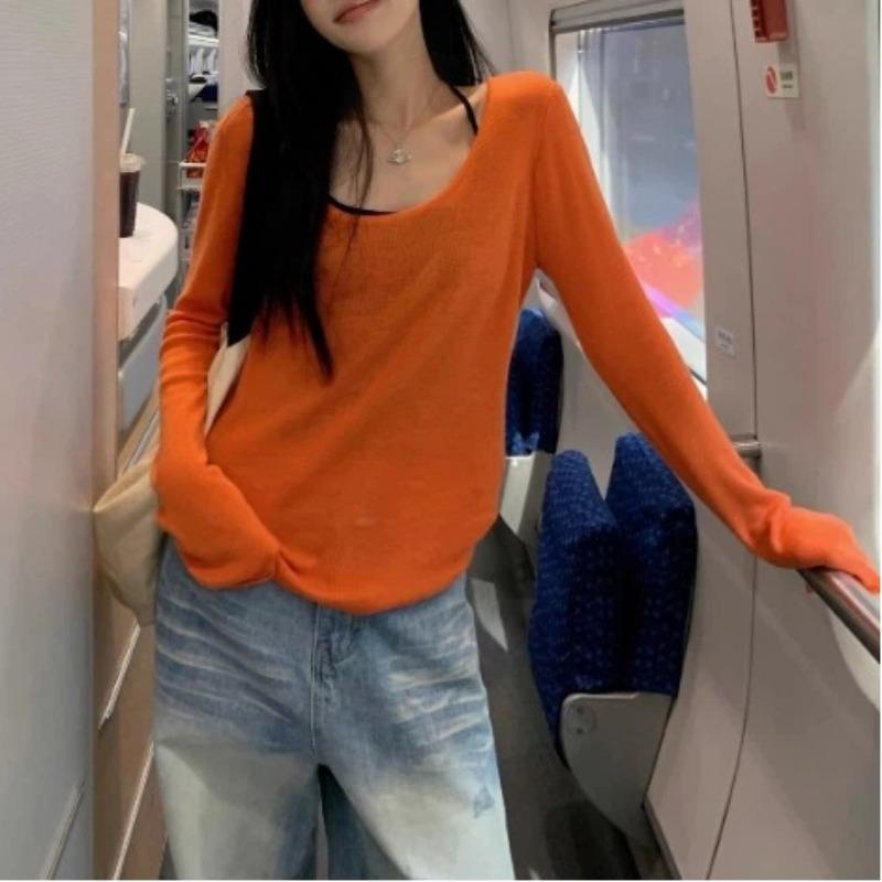 Summer Thin Long-sleeved Sun Protection Cover-up T-shirt Women's Loose Casual Off-shoulder New Top