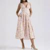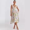 Summer new temperament V-neck waist slim-fitting sleeveless dress floral vacation dress medium and long dress