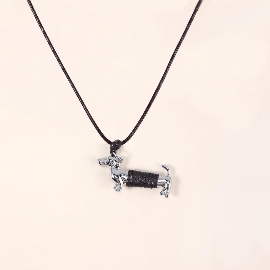 Trendy Dachshund Pendant Necklace: European, American Fashion, Versatile Long Design with Wax Rope