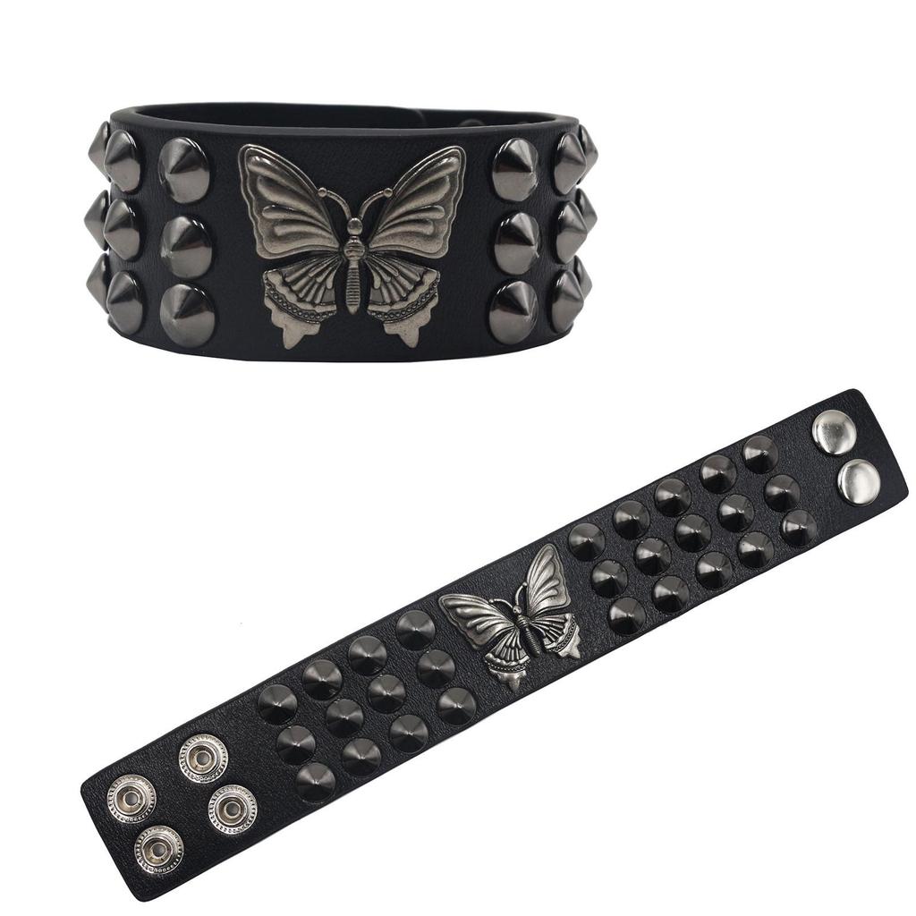 Creative Butterfly Rivet Leather Wristband Bracelet - European American Punk Retro Style