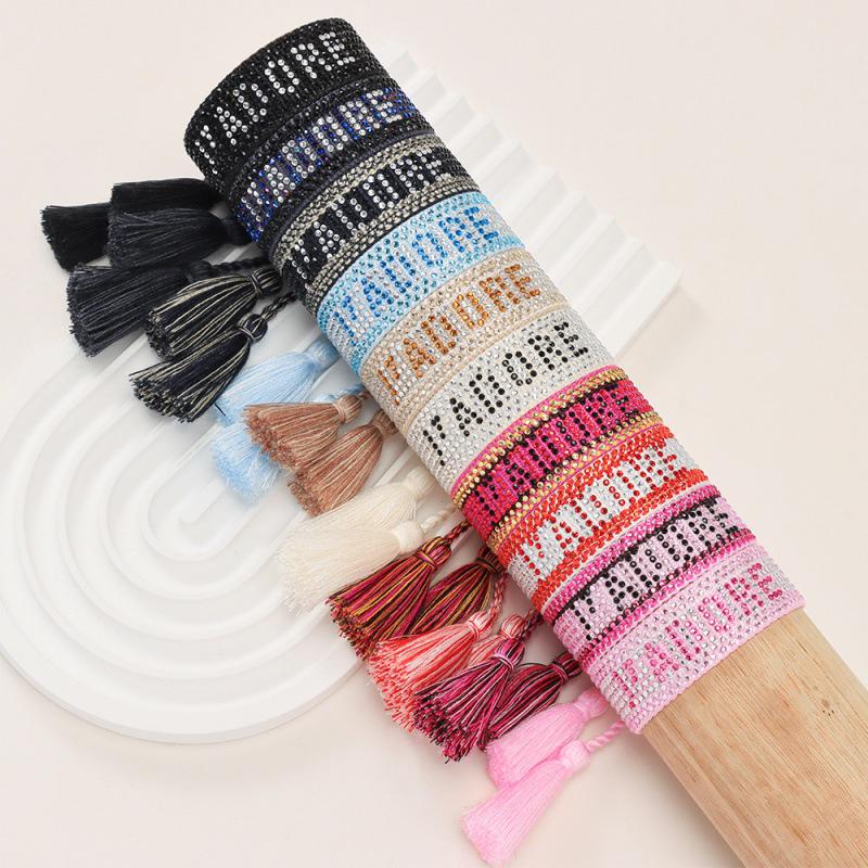 Unisex European Handwoven Tassel Bracelet with Hot-drilled Letter Design