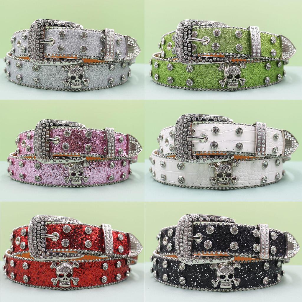 European Style Punk Skull Belt with Rhinestones - Unisex Rock Fashion Accessory