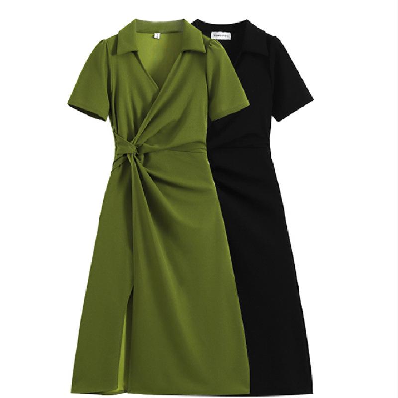 Plus Size Waist-Cinched Slimming Skirt for Women - French Style Summer Polo Dress
