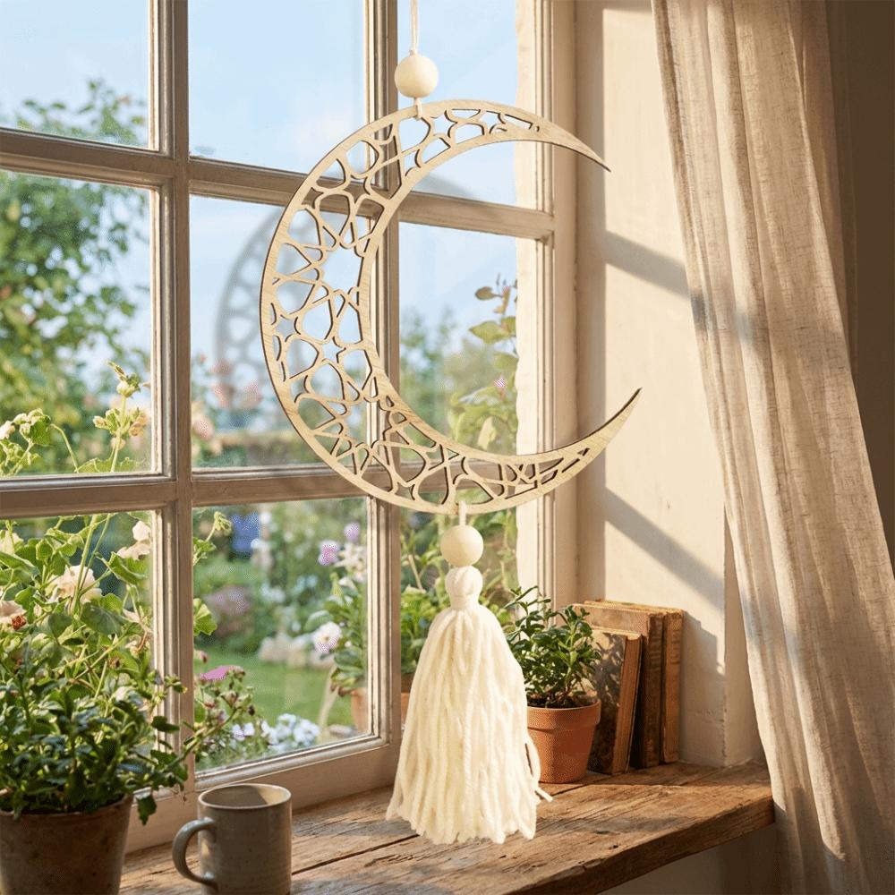 Hollowed-out Moon Star Hollow Mesh Wall Decor Handmade Wooden Handicraft Pendant Home Decoration