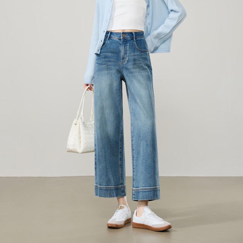 ESE-Y Women's High-Waist Cropped Wide-Leg Jeans