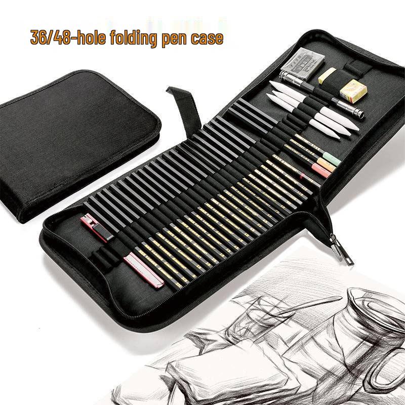 Foldable Canvas Pencil Case - 72 Slots, Zipper Closure for Art Tools and Student Supplies