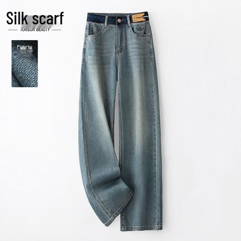 Si Bai She Women's Retro Washed High-Waist Wide-Leg Jeans