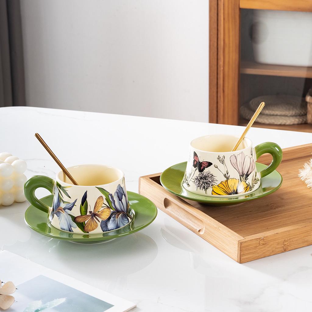Niche Hand-Painted Floral Ceramic Coffee Cup and Saucer - Luxurious Nordic Design