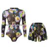 This stylish bikini set is designed specifically for women who prioritize both fashion and functionality. Featuring long sleeves for optimal sun protection, it ensures you stay safe and comfortable during your beach or poolside adventures. The suit is made from durable polyester, known for its lightweight and quick-drying properties. The set is adorned with an eye-catching pattern, adding a touch of flair to your swimwear collection. Completing the ensemble are European and American style shorts, offering a chic and modern look that complements the protective top. Perfect for those who love to blend style with practicality.