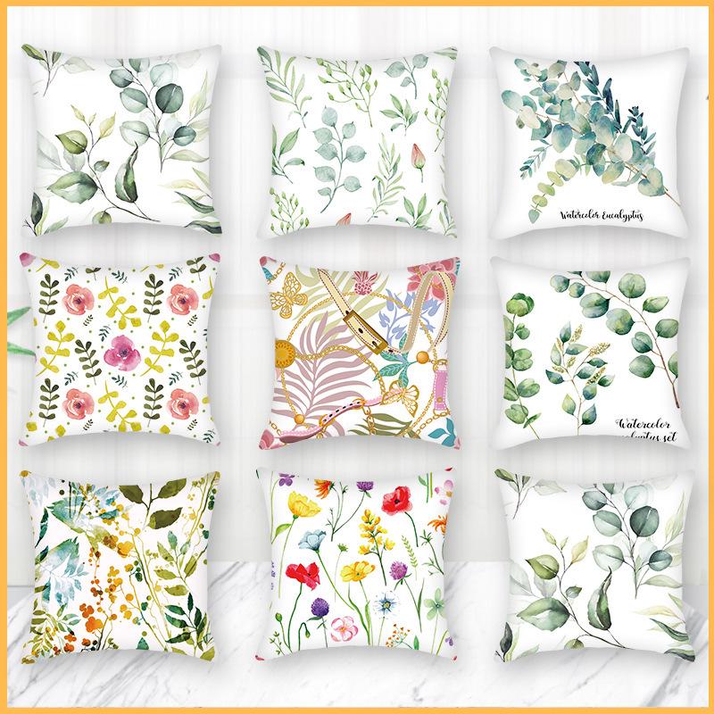 Green Leaves Plant Backrest Cushion Cover for Sofa & Bedroom