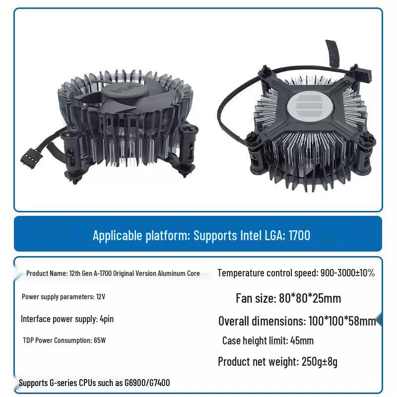 12th Gen LGA1700 Silent CPU Cooler: Aluminum Core, 4-Wire Fan with Temperature Control