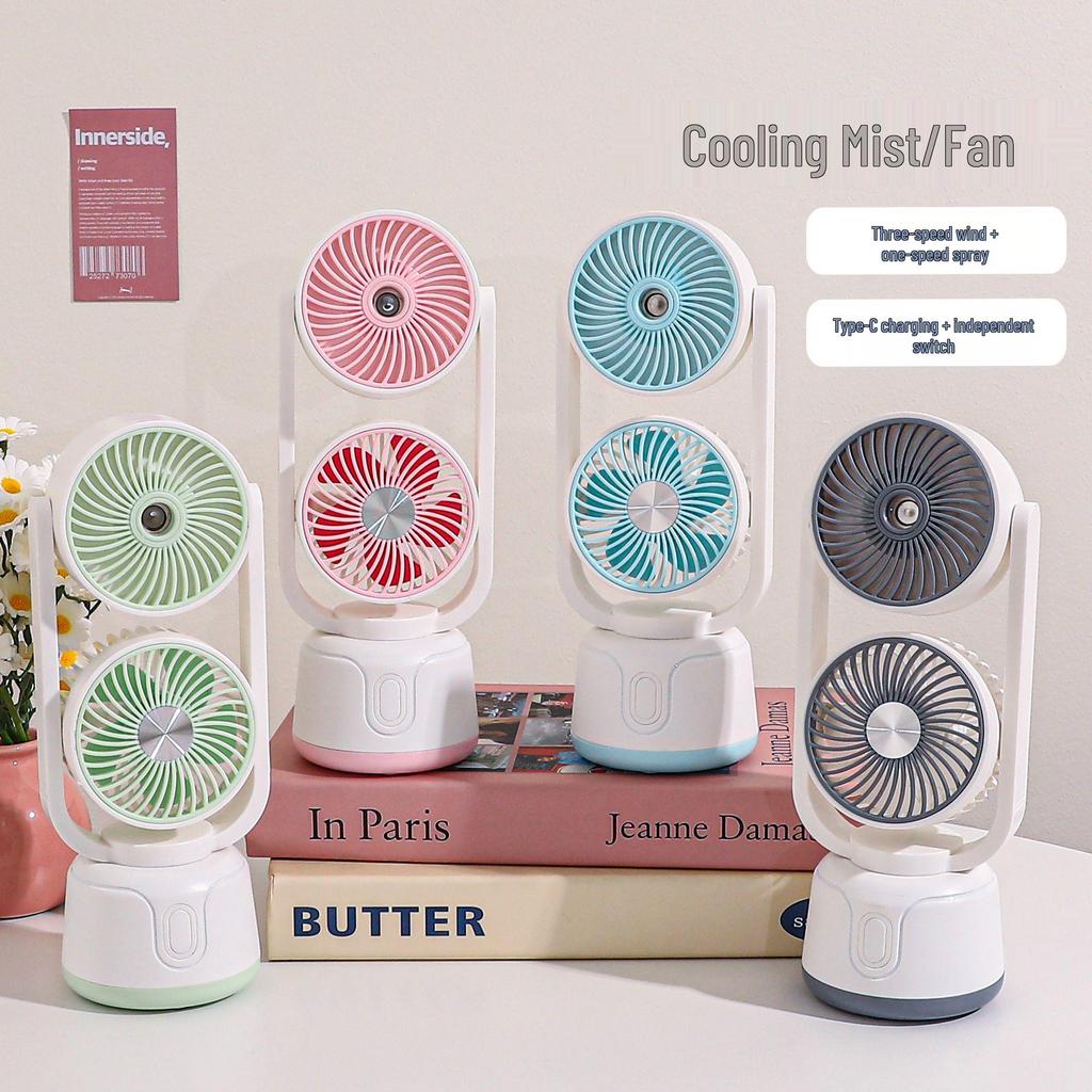 Dual-Head USB Mini Desktop Fan: Three-Speed, Strong Wind, Humidifying Spray for Summer Office