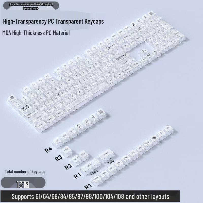 Transparent PC Keycaps Set: High-Transmittance Light-Transmitting Mechanical Keyboard Keycaps in White and Black with Crystal Finish