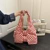Korean Retro Solid Color Pleated Bow Shoulder Bags for Women Large Capacity Ladies Tote Bag Simple Student Handbags with Zipper