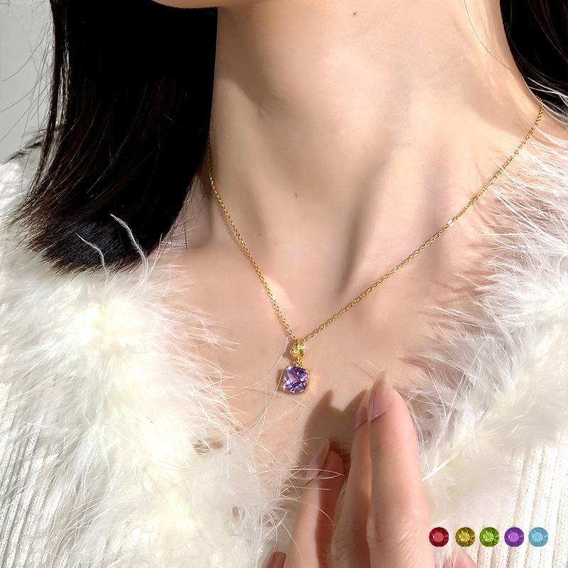 Women's S925 Pure Silver Necklace, Ice-Cut Natural Crystal, Premium Gemstone Series, Princess Square Pendant