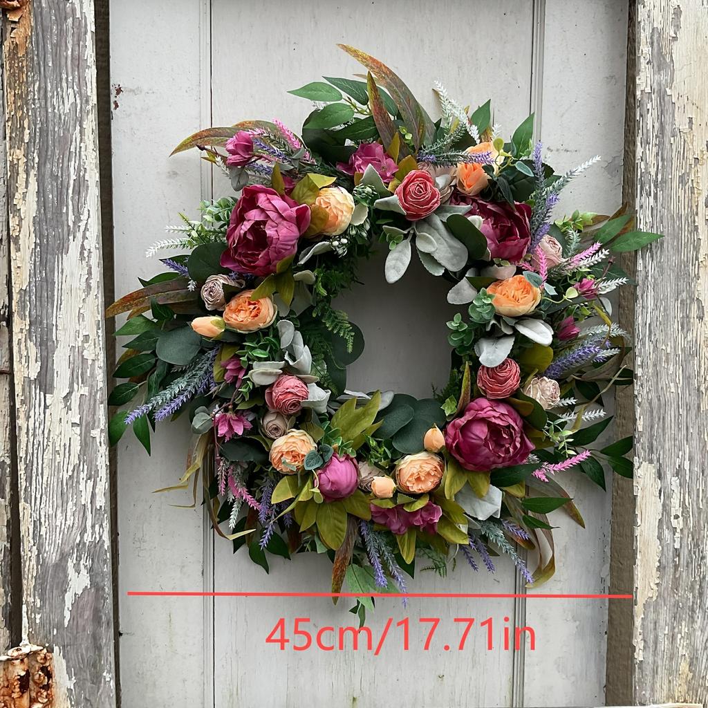 Artificial Wreath Peony Rose Garland with Leaves Vine Spring Summer Front Door Hanging Wreath for Farmhouse Office Home Wedding