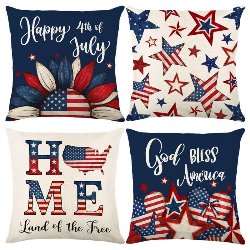4pcs 4th of July Printed Home Decor Pillow Cover Bedroom Living Room Sofa Decoration Polyester Cushion Cover with Zipper