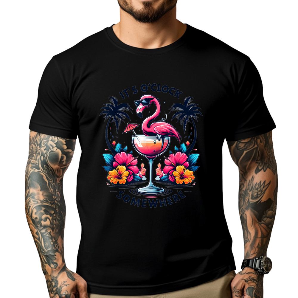 Its 5 OClock Somewhere Flamingo Beach Vacation Drinking 3d Printed T Shirts Youth Anime Street
