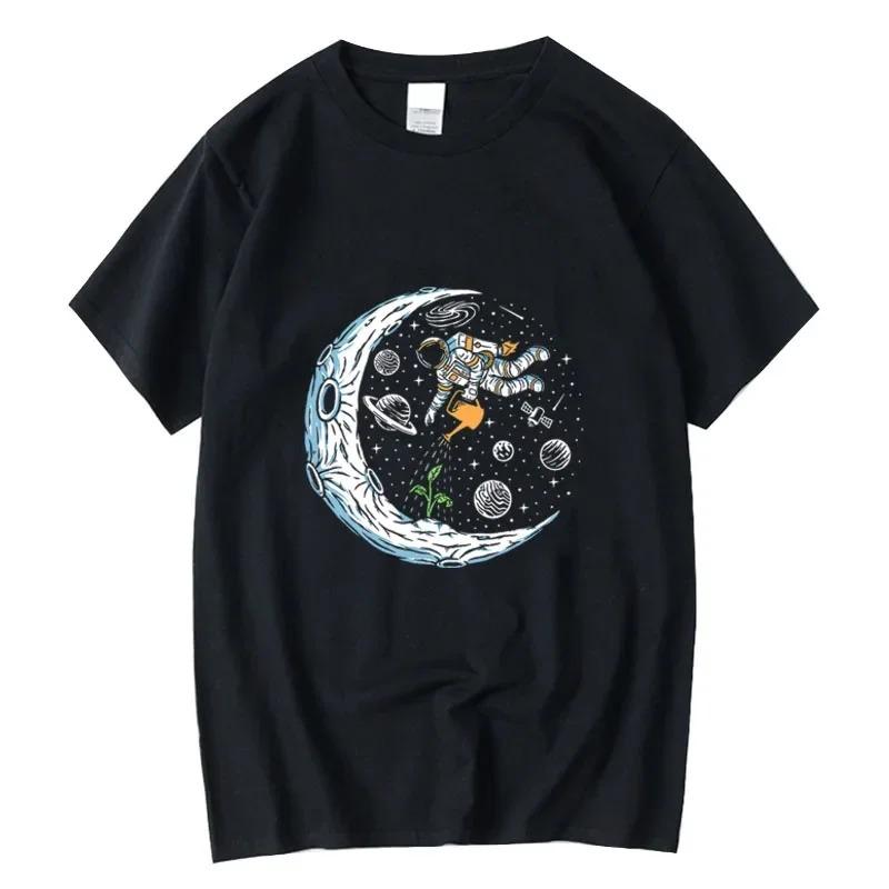 Summer Men Tshirt 100 Cotton Casual Funny Astronaut Loose Oneck Summer Loose Fit Fabric Stylish Breathable Short Sleeve Tops