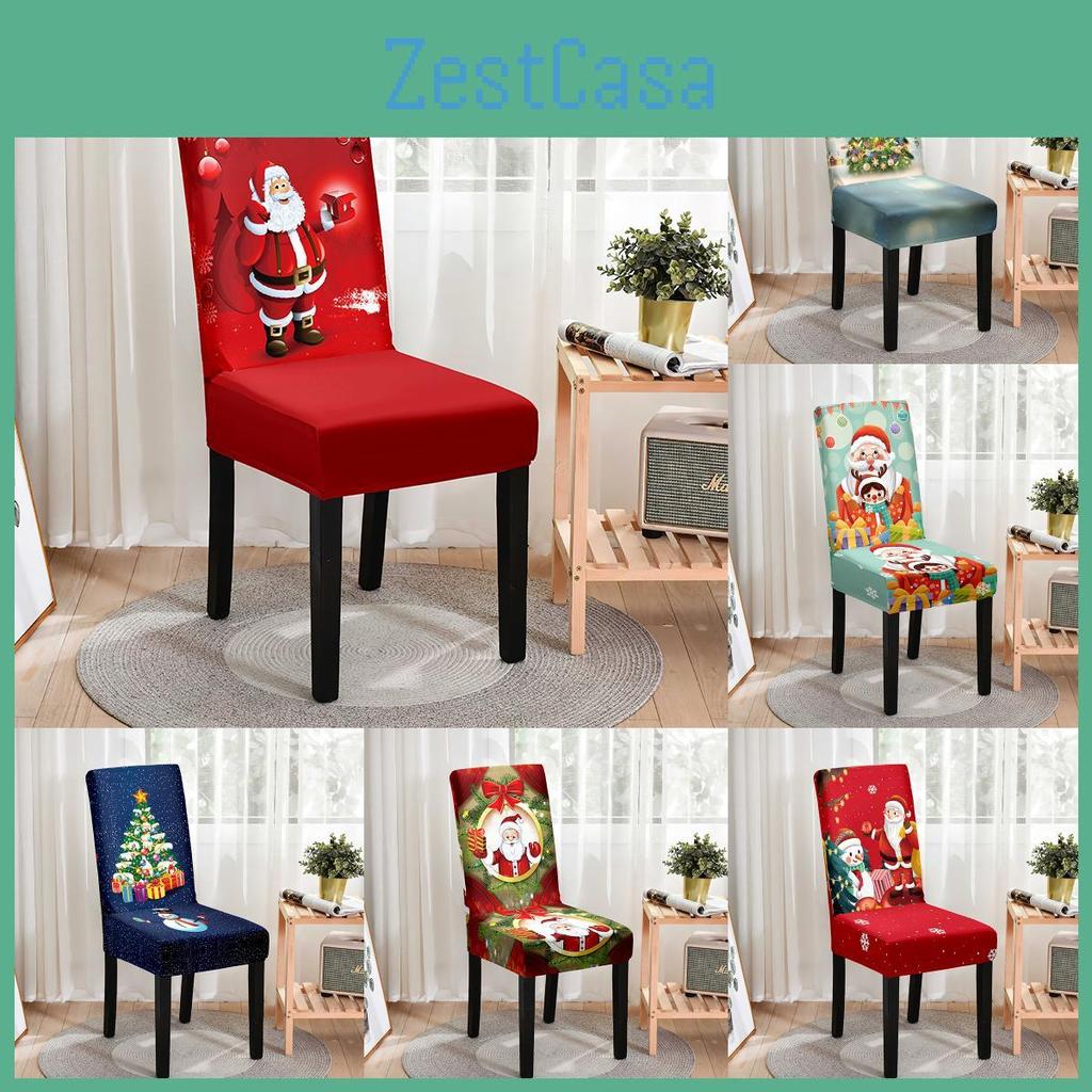 Festive Christmas Chair Cover Full Protection Stylish Cartoon Printed Dining Chair Set