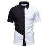 Men's Asymmetric Color Block Short Sleeve Button Down Shirt Black White Breathable Casual Business Tops