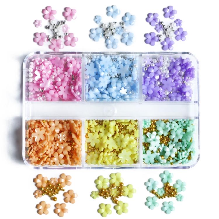 Five Petal Flower Nail Art Jewelry 6-compartment Box Size Mixed Resin Flower