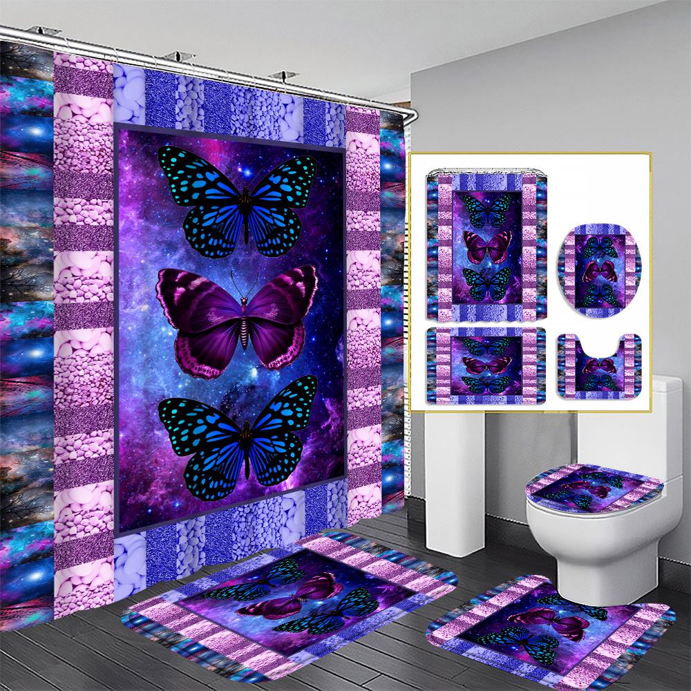 1/4Pcs Halloween Decoration Colorful Butterflies Pattern Shower Curtain Bathroom Decor Halloween Decoration Indoor Showr Curtain