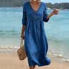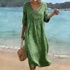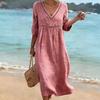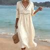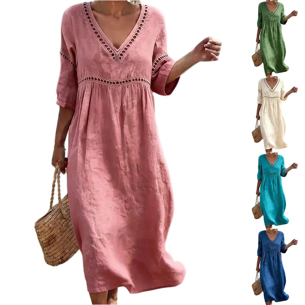 Women's Fashionable Casual V-Neck -Color Beach Dress: Loose-Fitting Openwork Dress